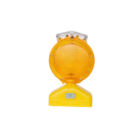 LED Barricade Warning Light – Type A/C, 3-Way, Amber Lens, Yellow Case & D-Cell Battery Powered