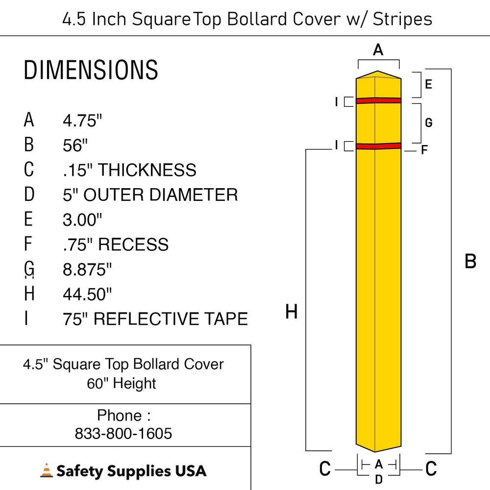4.5 Inch Square Bollard Cover with Reflective Stripes