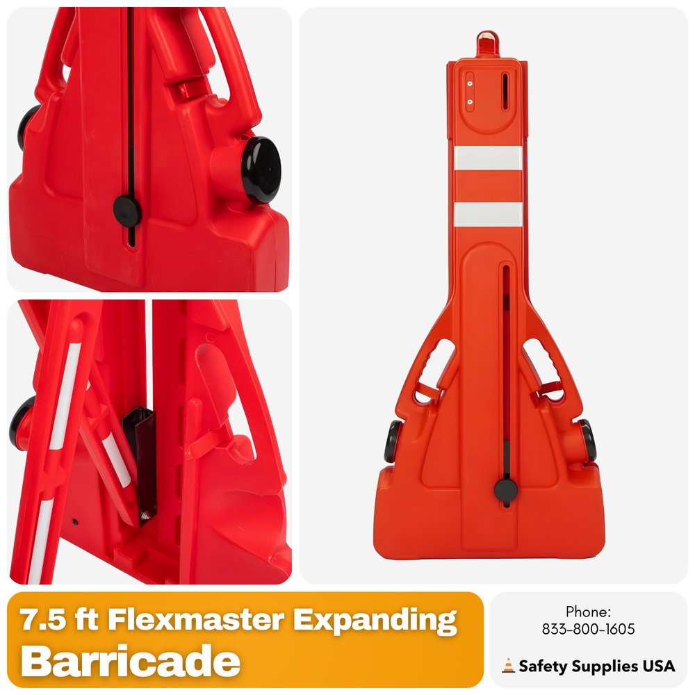 The FlexMaster Expanding Barricade is a durable, lightweight, and rust-resistant solution for crowd control and safety. Expanding up to 7.5 ft, this polyethylene barricade is designed for effortless handling and storage. Its hook-and-loop connection system allows multiple units to be linked together, creating customizable barrier runs for construction sites, warehouses, and event spaces.