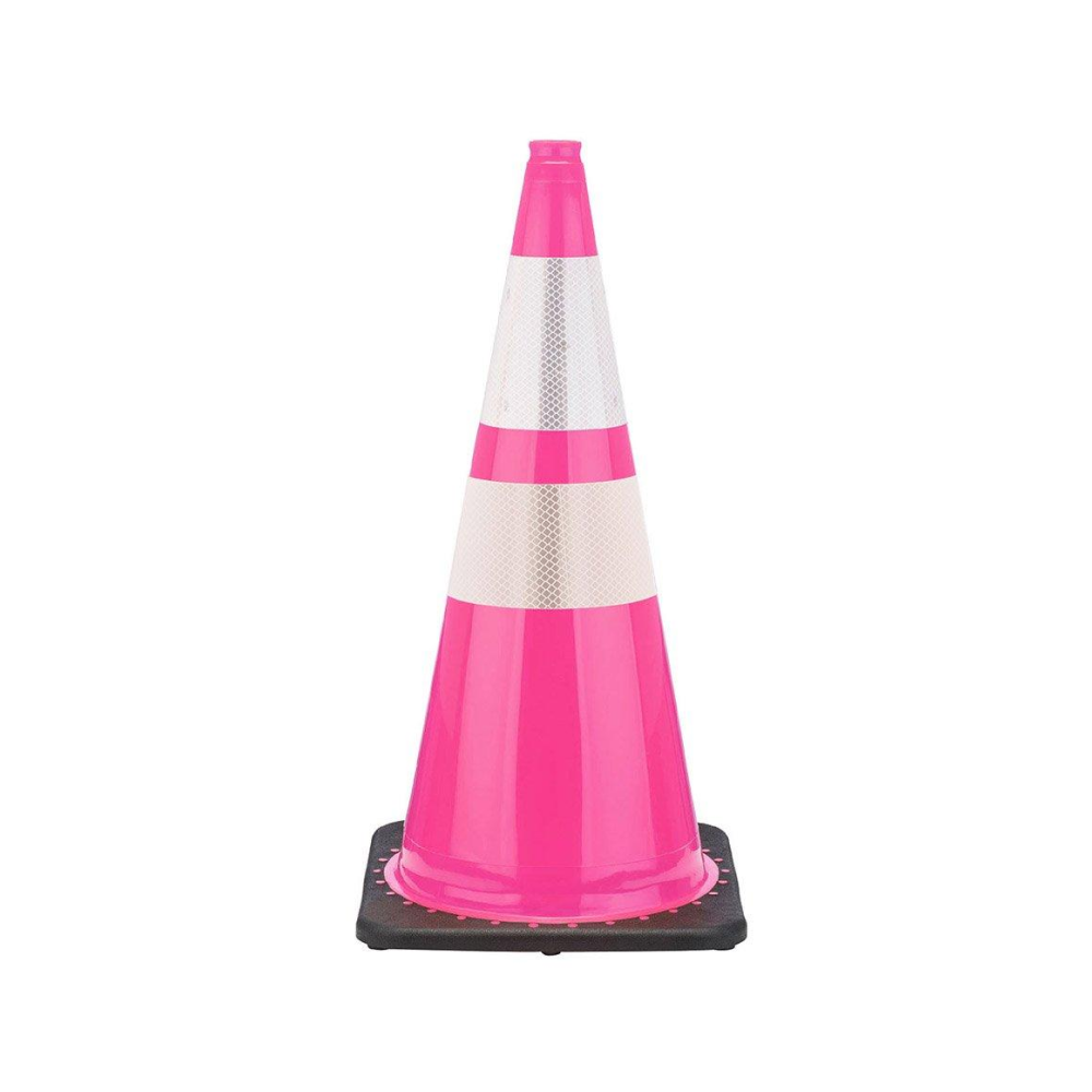 28" Pink Traffic Cone, 7 lb Black Base