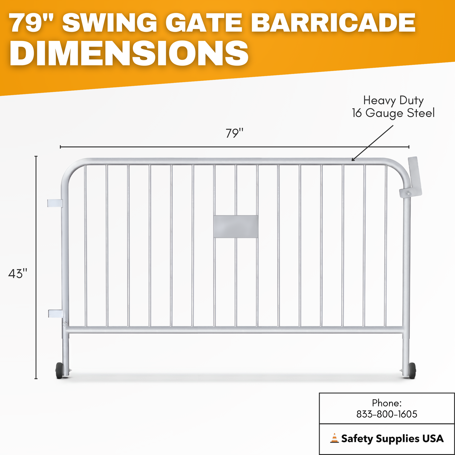 - Gate Height: 43 inches tall, designed for effective crowd control and pedestrian access.